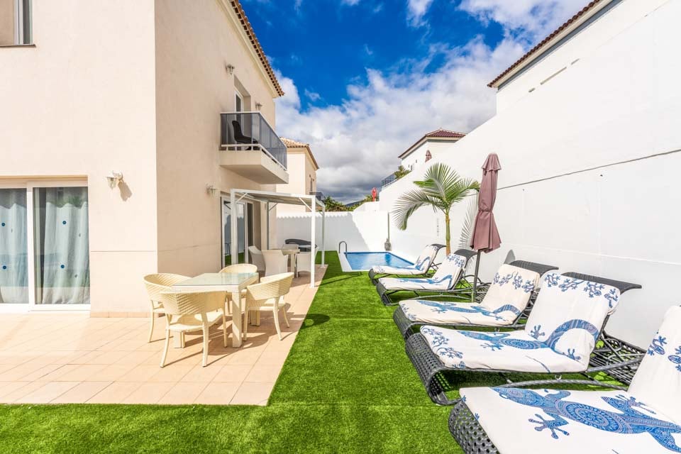 De prachtige vulkanische zandstranden van Fanabe liggen op slechts 15 minuten lopen, terwijl diverse restaurants, winkels en een grote supermarkt aan de overkant van de weg te vinden zijn. De villa is van hoge kwaliteit, met een lichte, moderne inrichting en vier ruime slaapkamers verdeeld over drie verdiepingen. Zorg dat je de hoofdslaapkamer op de eerste verdieping reserveert, want deze is compleet uitgerust met een flatscreen-tv, een eigen badkamer en een balkon met uitzicht op het zwembad.