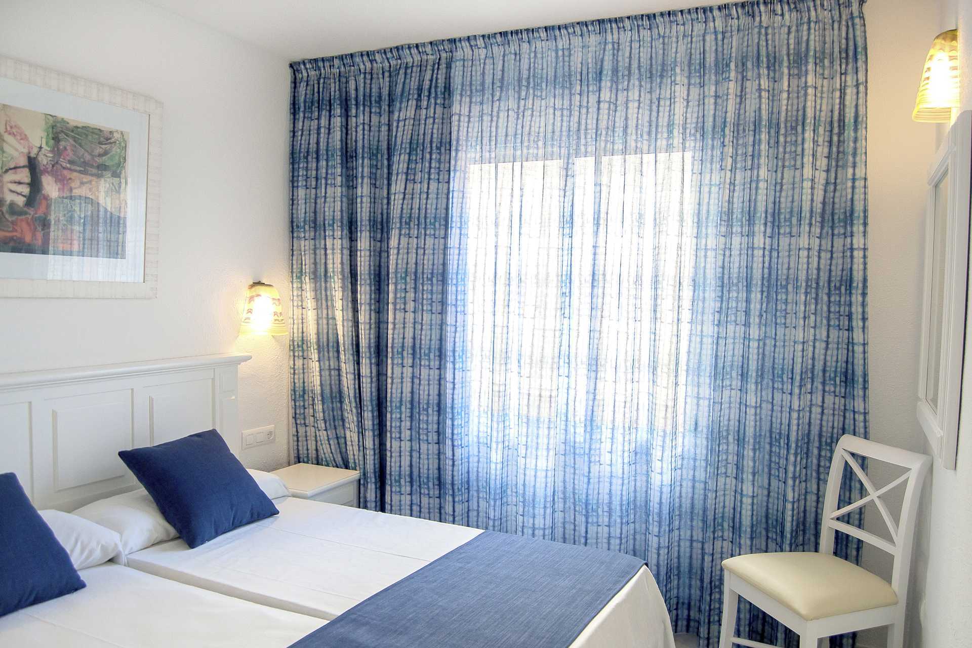 Tweepersoonskamer met balkon of terras. Twee eenpersoonsbedden. Mogelijkheid voor extra bed in slaapbank. Airconditioning inbegrepen. Wifi en kluisje tegen betaling. Koelkast, magnetron, waterkoker, koffie en thee. Tv met internationale zenders. Föhn. Badkamer met douche en toilet. Schoonmaak 5 keer / week. Kinderen jonger dan twee jaar zijn inbegrepen in het maximum aantal personen op de kamer.
