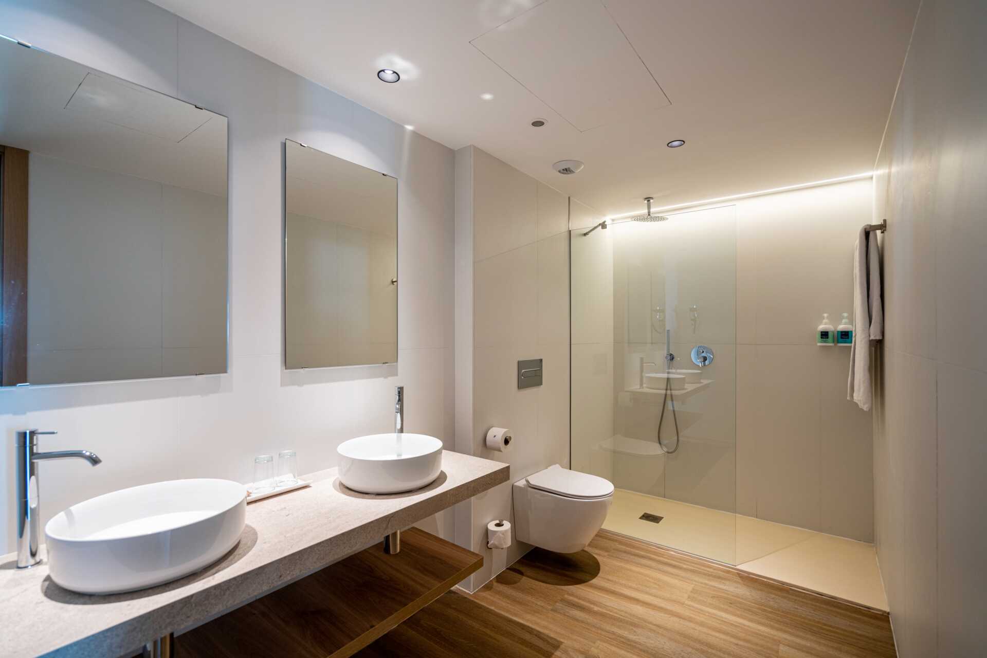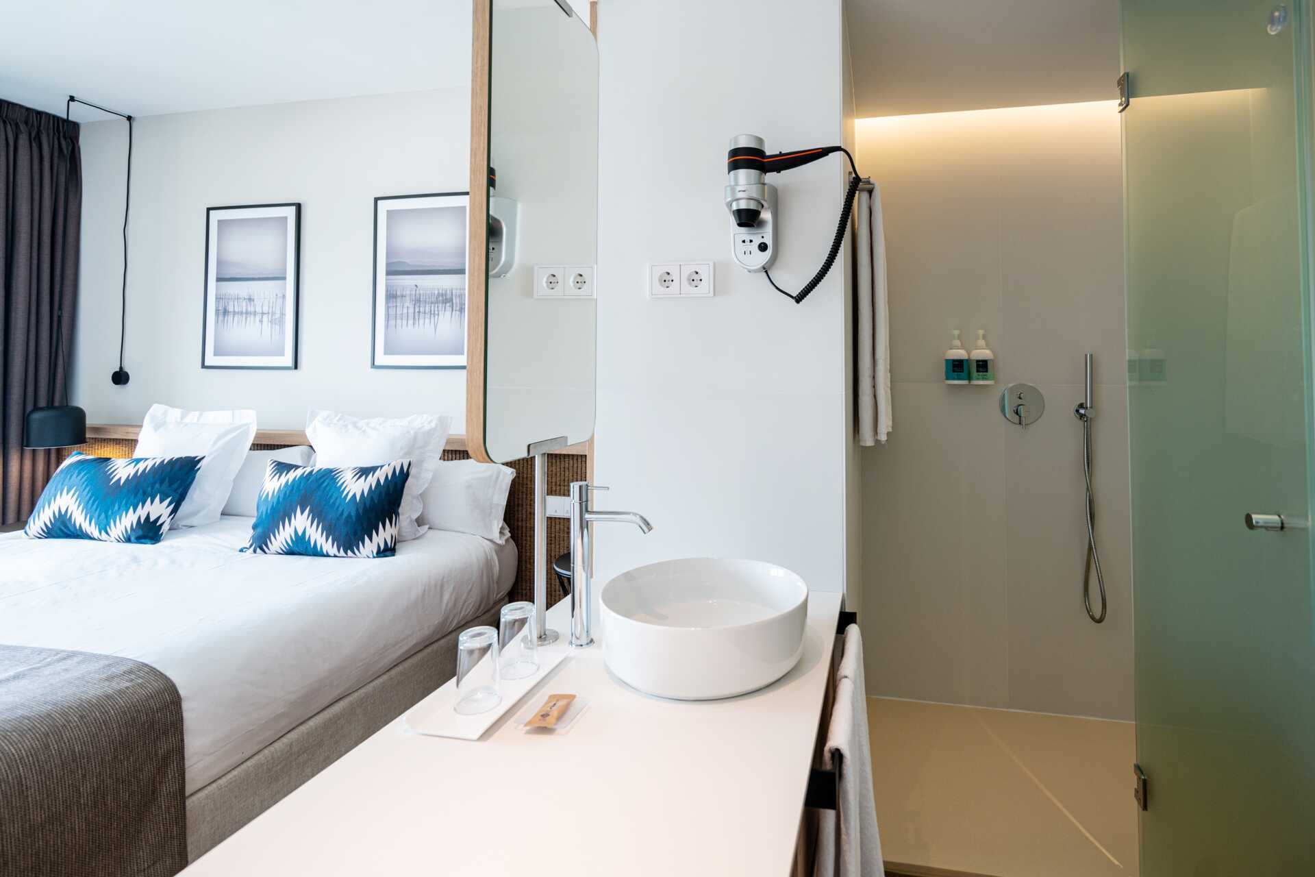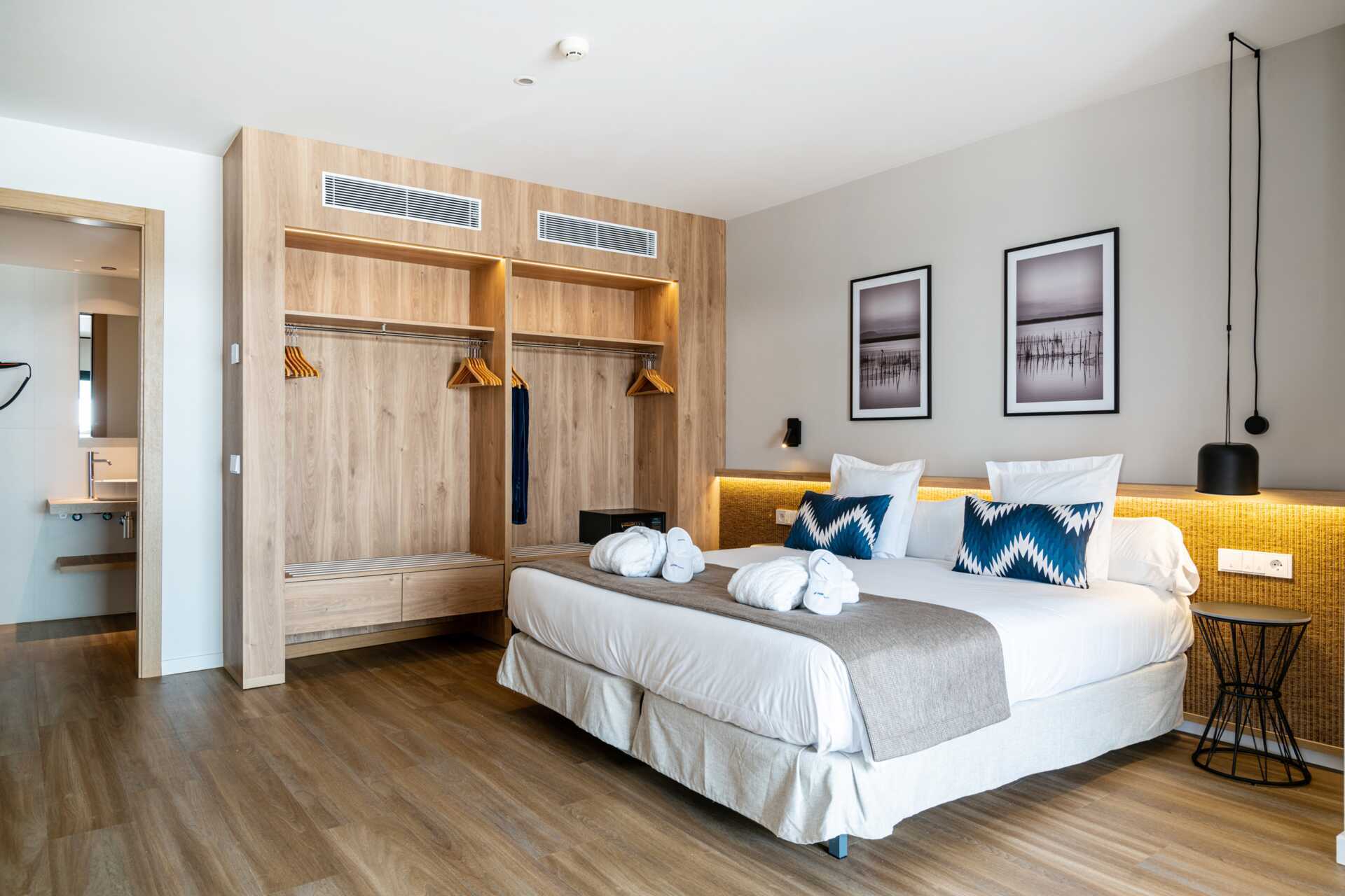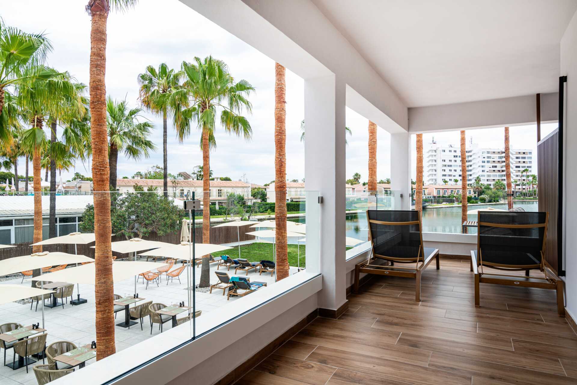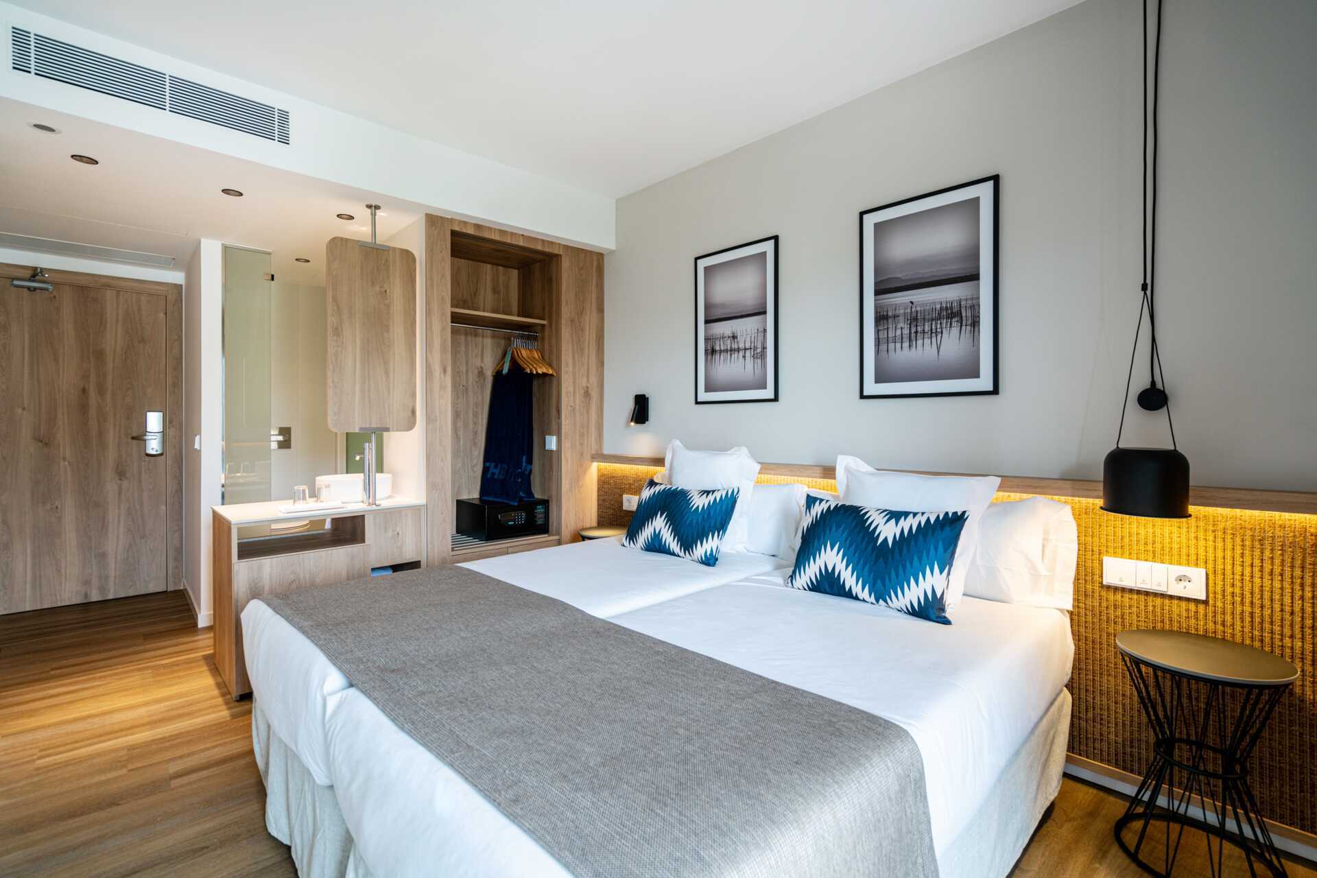 Deluxe kamer met balkon, sommige met uitzicht op het zwembad. Twee eenpersoonsbedden. Wifi, airconditioning en kluisje inbegrepen. Koelkast. Waterkoker en koffie en thee. Tv met internationale zenders. Föhn. Open plattegrond voor de badkamer. Matglazen deur naar douche en toilet. Schoonmaak 7 keer/week.