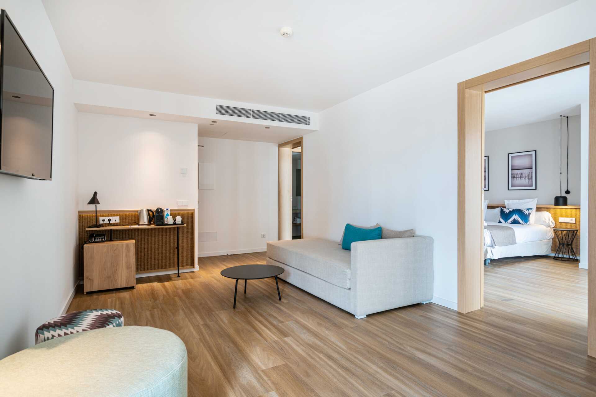 Suite met balkon. De suite bestaat uit een slaapkamer en een woonkamer met een bank. Een tweepersoonsbed. Wifi, airconditioning en kluisje inbegrepen. Koelkast. Waterkoker. Nespresso-apparaat - capsules inbegrepen en elke dag bijgevuld. Tv met internationale zenders. Föhn. Badkamer met douche en toilet. Schoonmaak 7 keer/week.