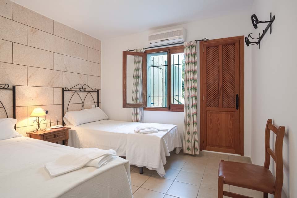 Twee eenpersoonsbedden, airconditioning, balkon, deuren naar terras