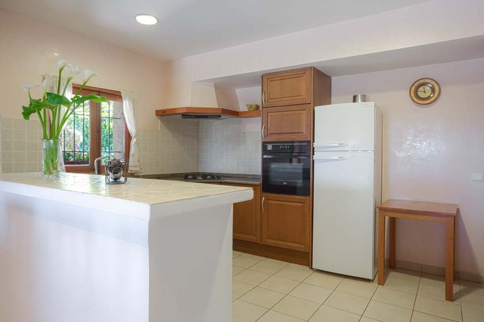 Buiten is er een schaduwrijk, overdekt terras met eetgelegenheid in de openlucht en voor de competitieve gasten is er een tafeltennistafel. Aan de zijkant van de tuin bevindt zich een extra overdekte ruimte met een stenen barbecue en een kleine koelkast. Het echte juweeltje van deze villa is het glinsterende zwembad, omgeven door ligstoelen en palmbomen. Op het terrein vindt u ook een hot tub voor ultieme ontspanning terwijl de zon ondergaat.