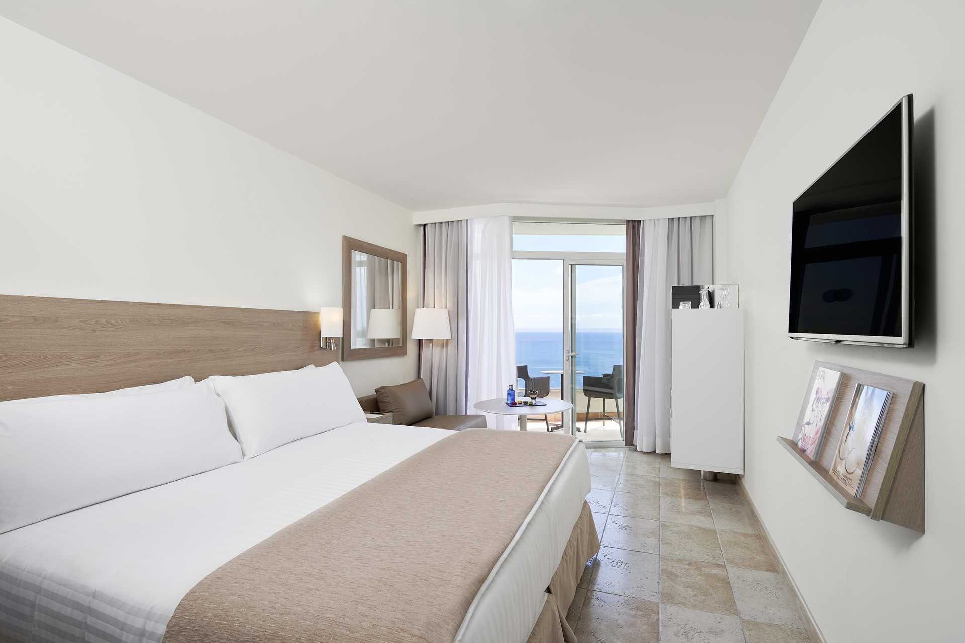 Tweepersoonskamers met balkon of terras, sommige met zeezicht of beperkt zeezicht. Een tweepersoonsbed of twee eenpersoonsbedden. Mogelijkheid tot extra bed voor een kind op een slaapbank. Wifi, airconditioning en kluisje inbegrepen. De kluis beschikt over stopcontacten om telefoons, camera's, tablets, etc. op te laden. Minibar. Waterkoker en koffie en thee. Tv met internationale zenders. Badjassen en hotelslippers. Badkamer met bad of douche en toilet. Schoonmaak 7 keer/week. Kinderen jonger dan twee jaar zijn inbegrepen in het maximale aantal personen in de kamer.