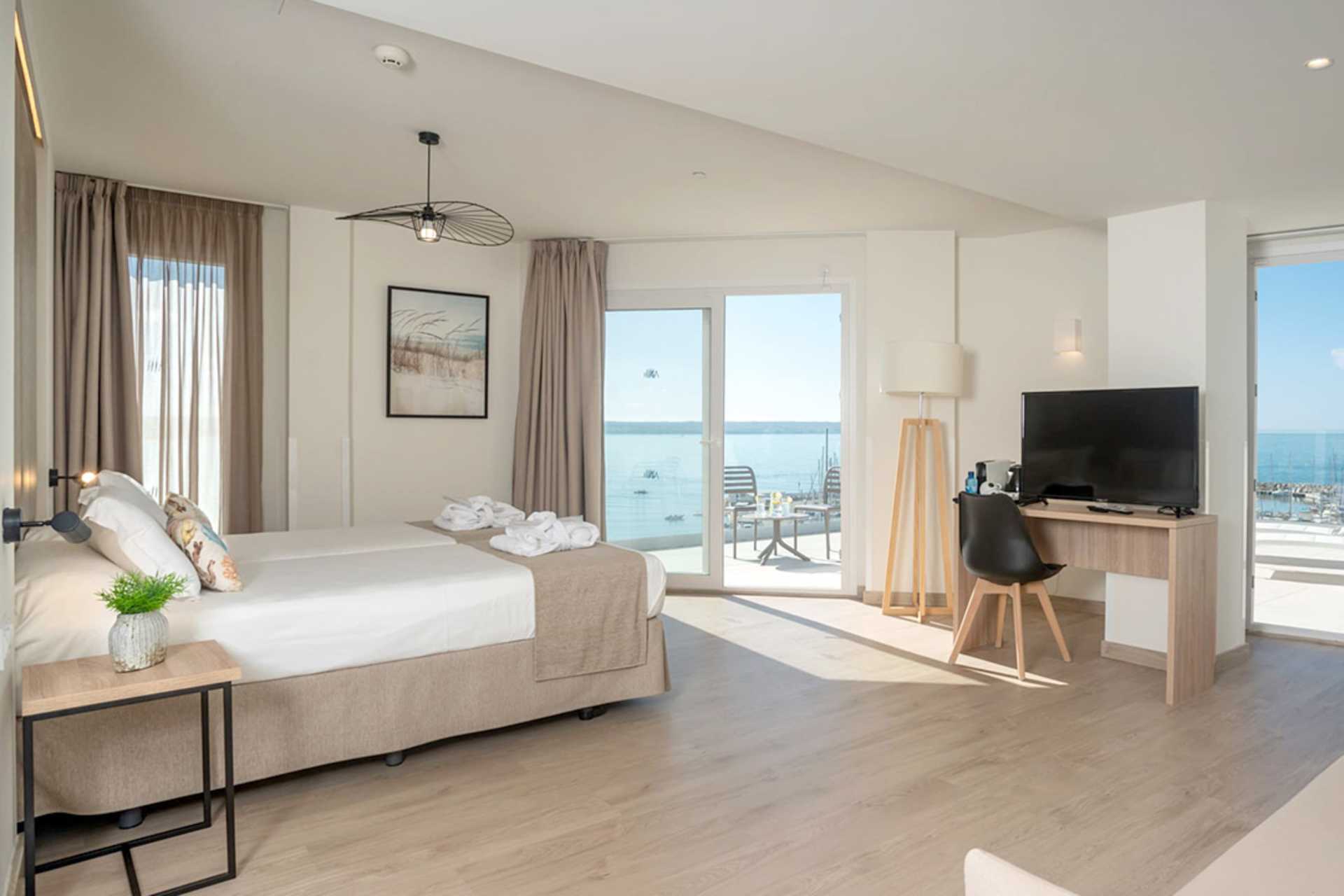 Junior suite met balkon en zeezicht. Een tweepersoonsbed of twee eenpersoonsbedden. Mogelijkheid voor extra bed in slaapbank. Wifi, airconditioning en kluisje inbegrepen. Minibar. Tv met satellietzenders. Föhn. Badkamer met douche en toilet. Schoonmaak 7 keer/week.
