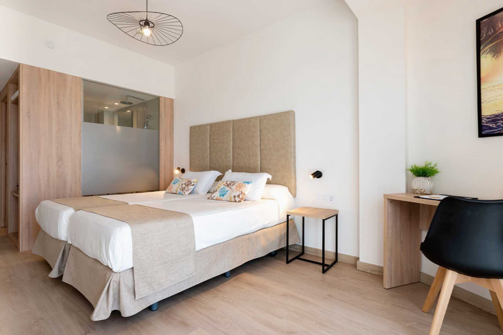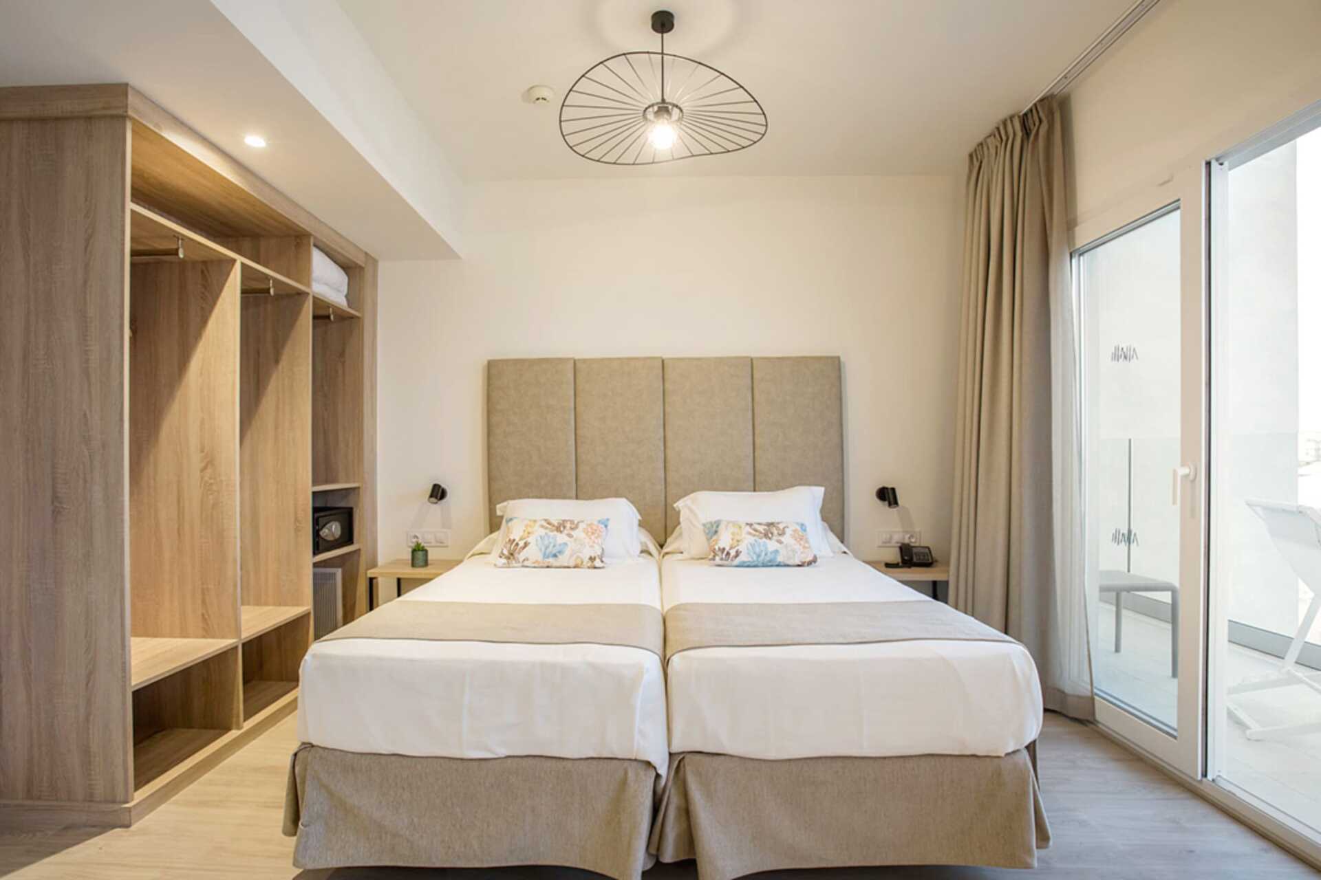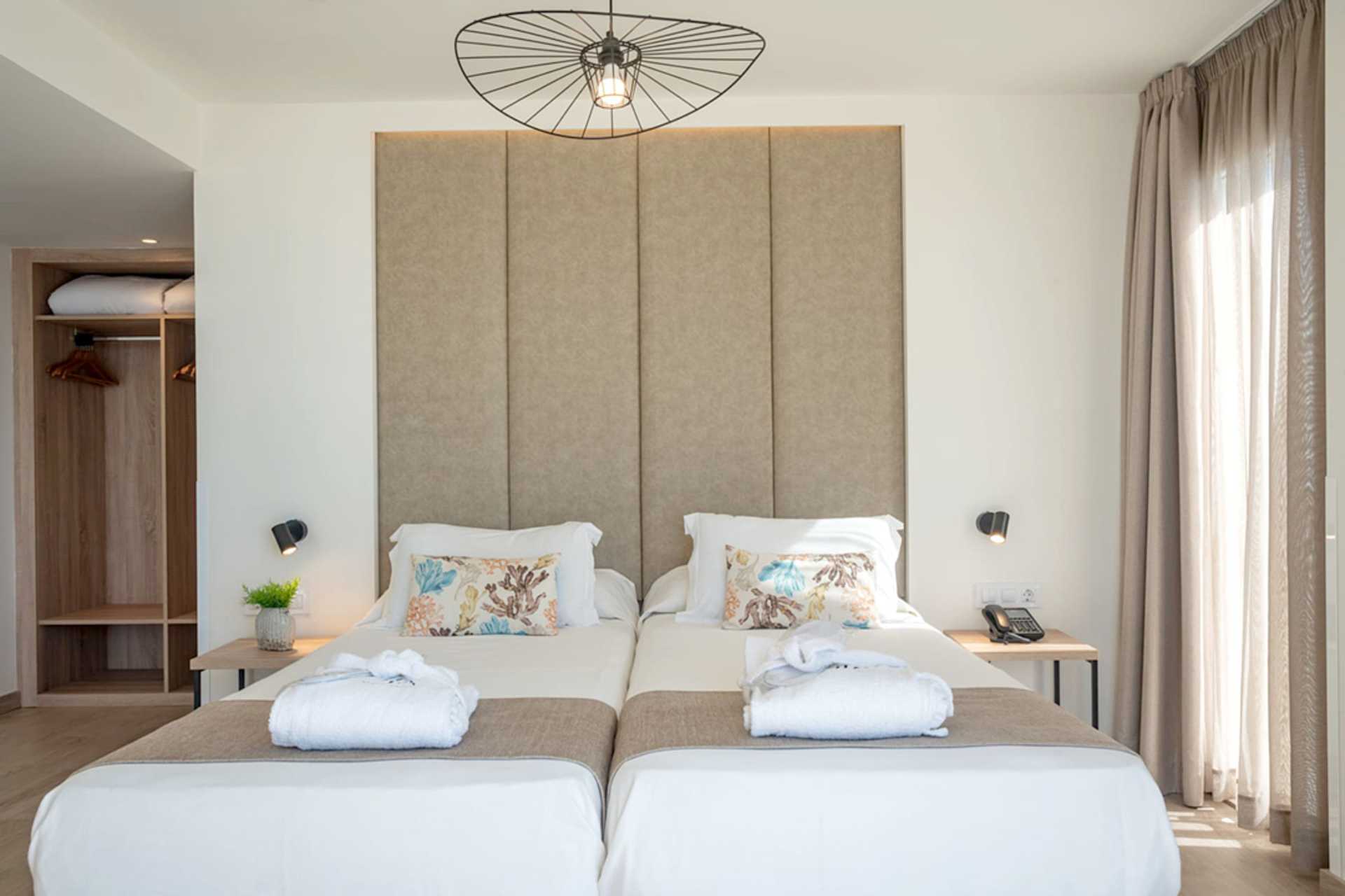 Tweepersoonskamer met balkon, sommige met zwembadzicht, beperkt zeezicht of zeezicht. Een tweepersoonsbed of twee eenpersoonsbedden. Mogelijkheid voor extra bed in slaapbank. Wifi, airconditioning en kluisje inbegrepen. Minibar. TV met satellietzenders. Föhn. Badkamer met douche en toilet. Schoonmaak 7 keer/week.
