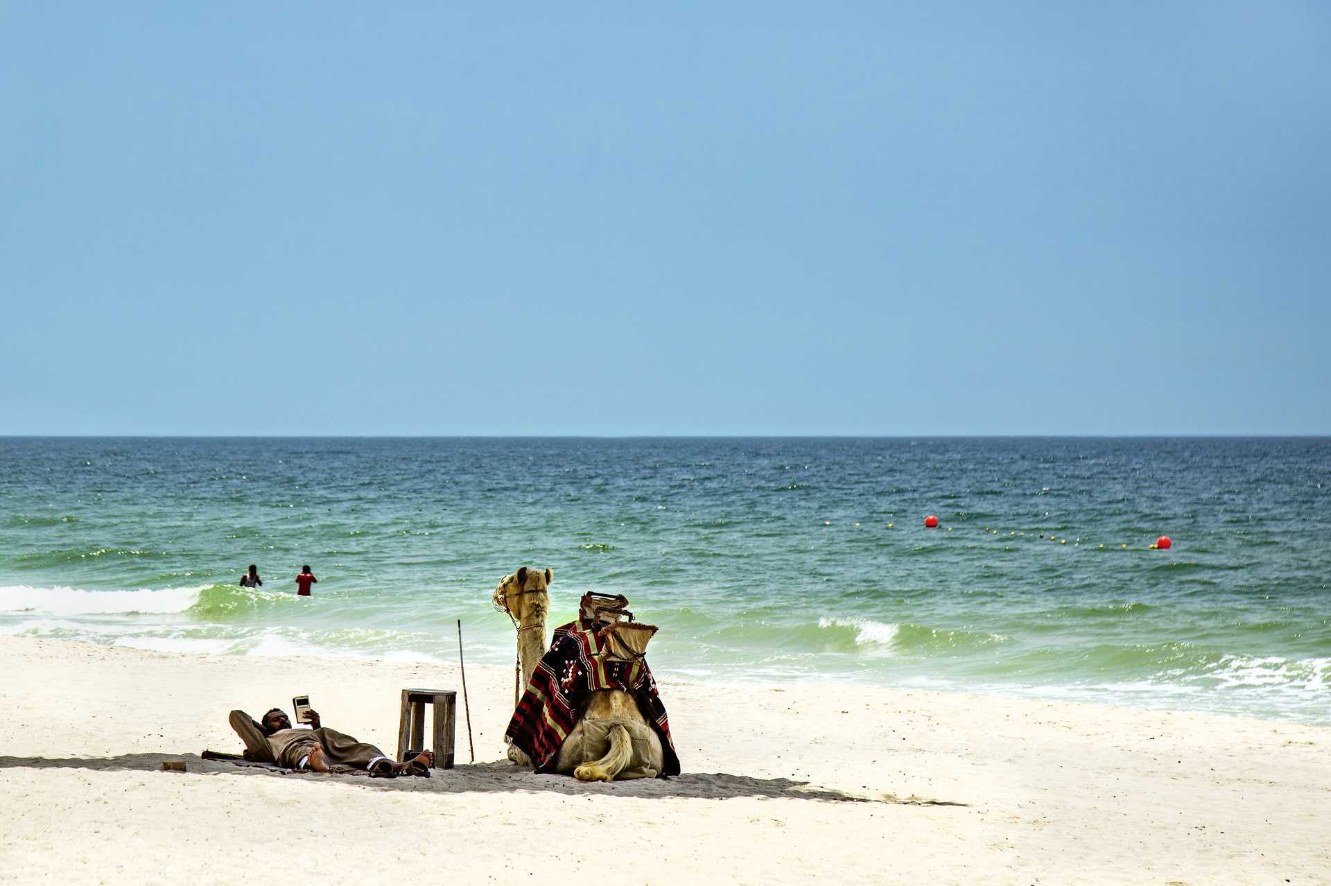 In Ajman ligt een prachtig wit zandstrand dat 16 kilometer lang is. Helder water en watersporten op het strand.