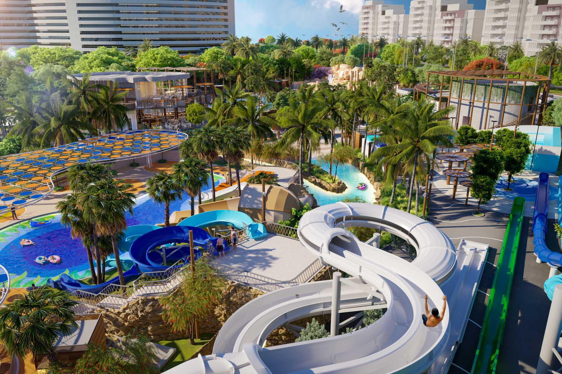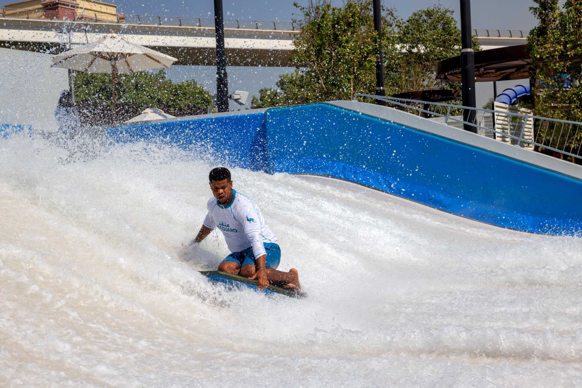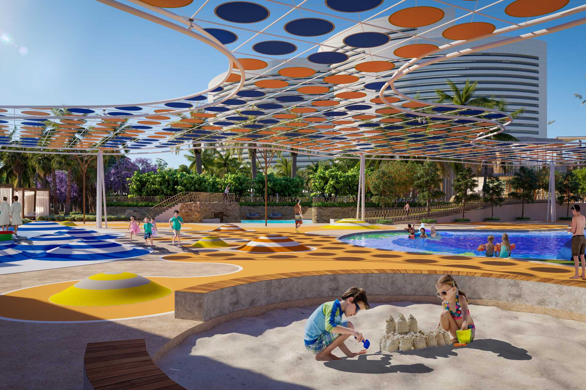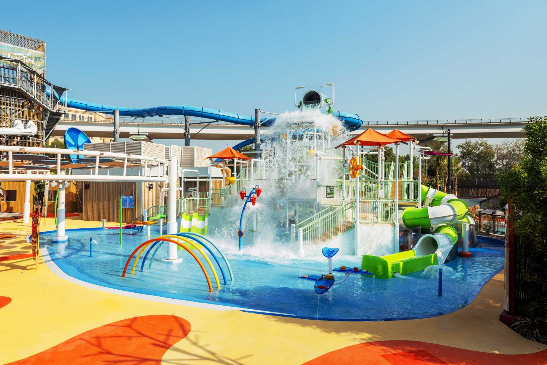 Van bovenaf gezien vormt het Grand Hyatt het woord "Dubai" in het Arabisch. Het Grand Hyatt is een indrukwekkend hotel met een groot zwembad. Drie zwembaden zijn temperatuurgeregeld, waarvan er één wordt beschouwd als een van de grootste zwembaden in Dubai. Voor de allerkleinsten is er een schaduwrijk pierenbadje. Ligbedden, parasols en badhanddoeken zijn te leen. Er is ook een binnenzwembad en daarna Vanaf 23.00 uur is het zwembad toegankelijk voor gasten ouder dan 16 jaar. Het zwembad is 24 uur per dag geopend. Het Grand Hyatt biedt ook elke dag een gratis pendeldienst van het hotel naar het openbare strand La Mer, waar veel restaurants en cafés te vinden zijn.