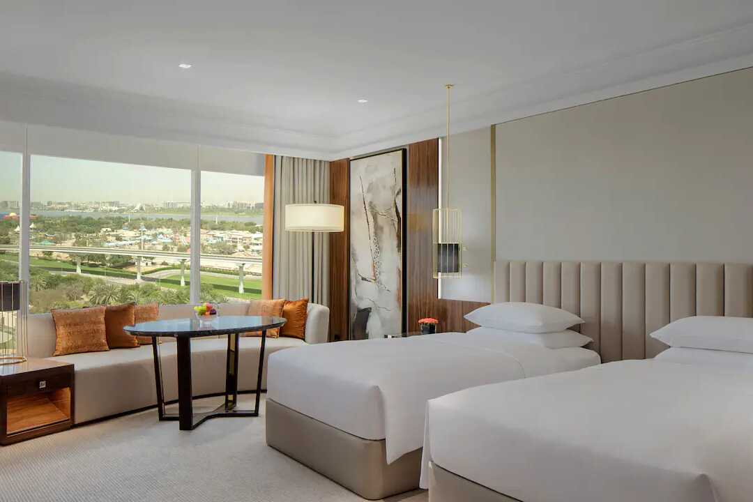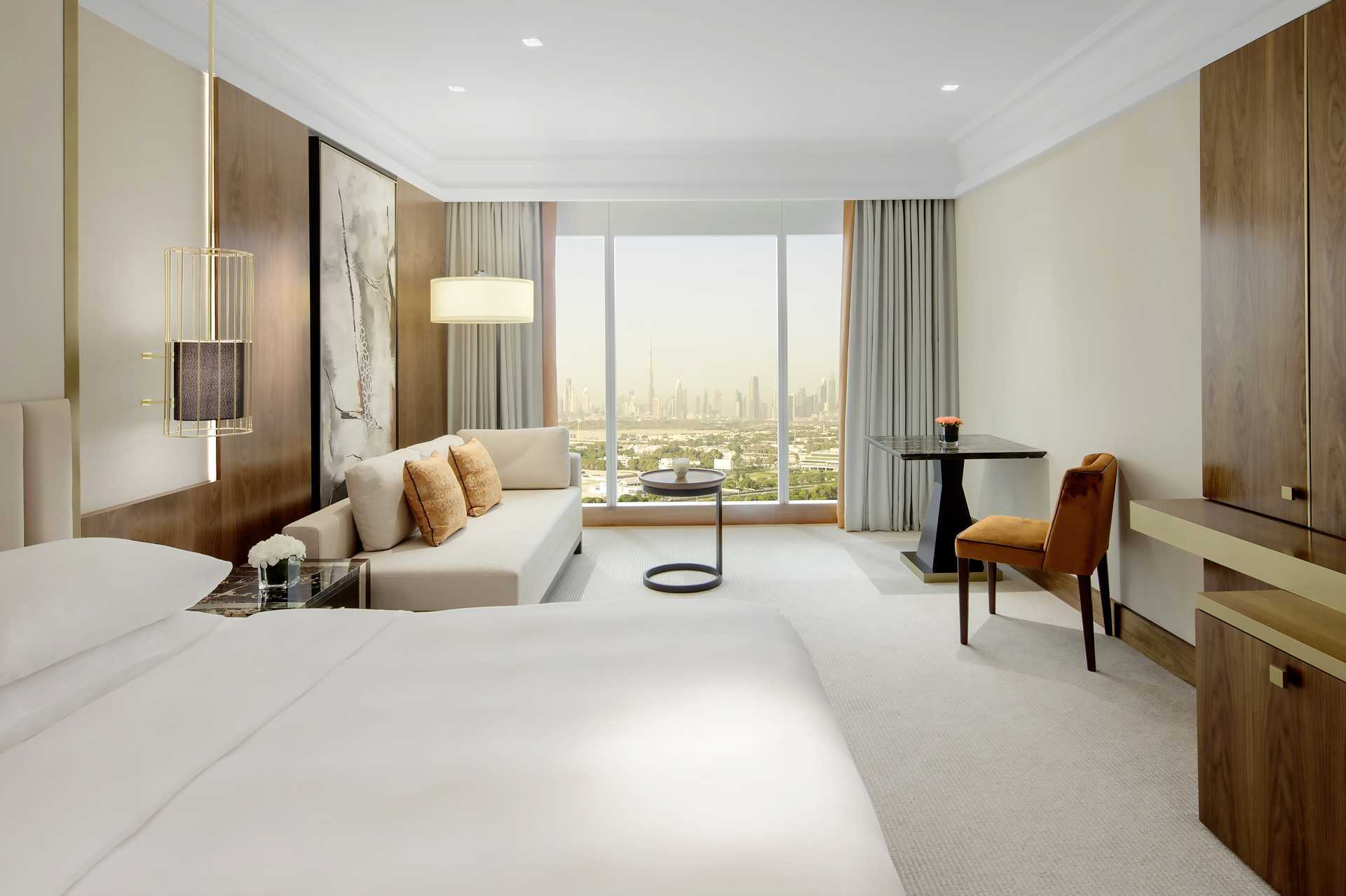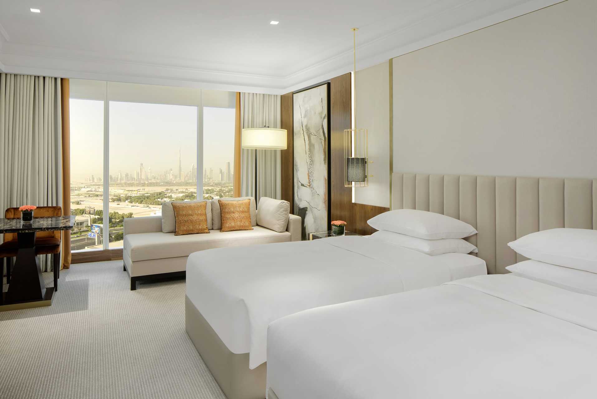 Deluxe kamers, sommige met uitzicht op de skyline van Dubai. De kamers hebben geen patio. Een tweepersoonsbed of twee eenpersoonsbedden. Mogelijkheid voor extra bedden in slaapbank. Wifi, airconditioning en kluis inbegrepen. Vloerbedekking. Minibar. Koffiezetapparaat. TV met internationale zenders. Strijkijzer en strijkplank. Föhn. Badjassen en slippers. Badkamer met bad of douche en wc. Schoonmaak 7 keer/week. Kinderen jonger dan twee jaar zijn inbegrepen in het maximale aantal personen in de kamer.