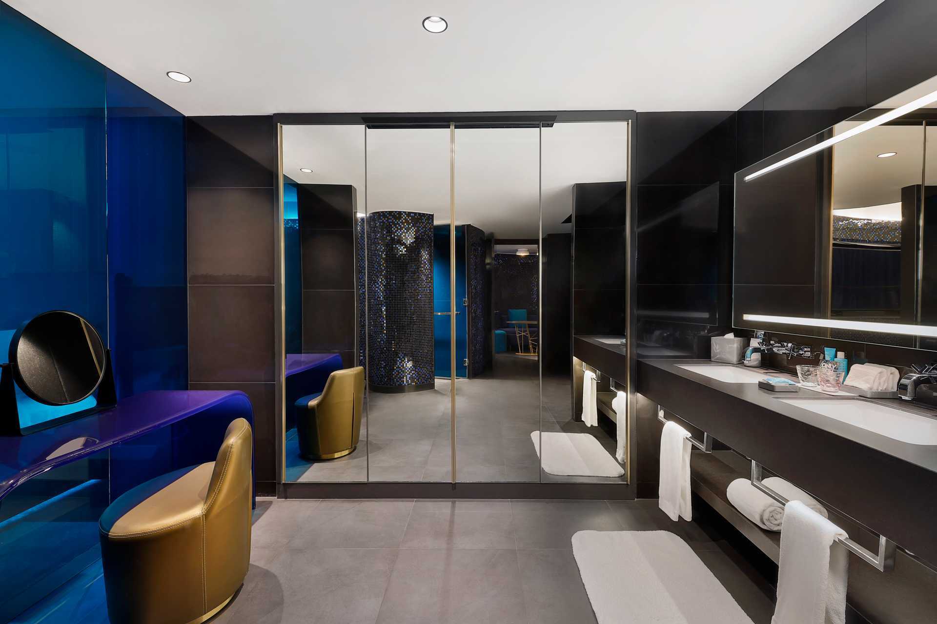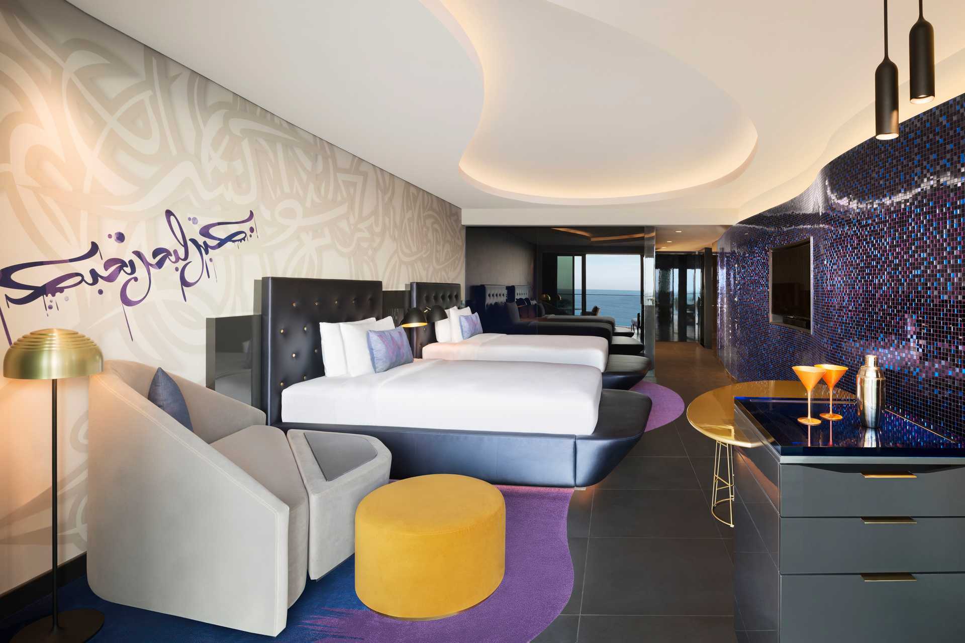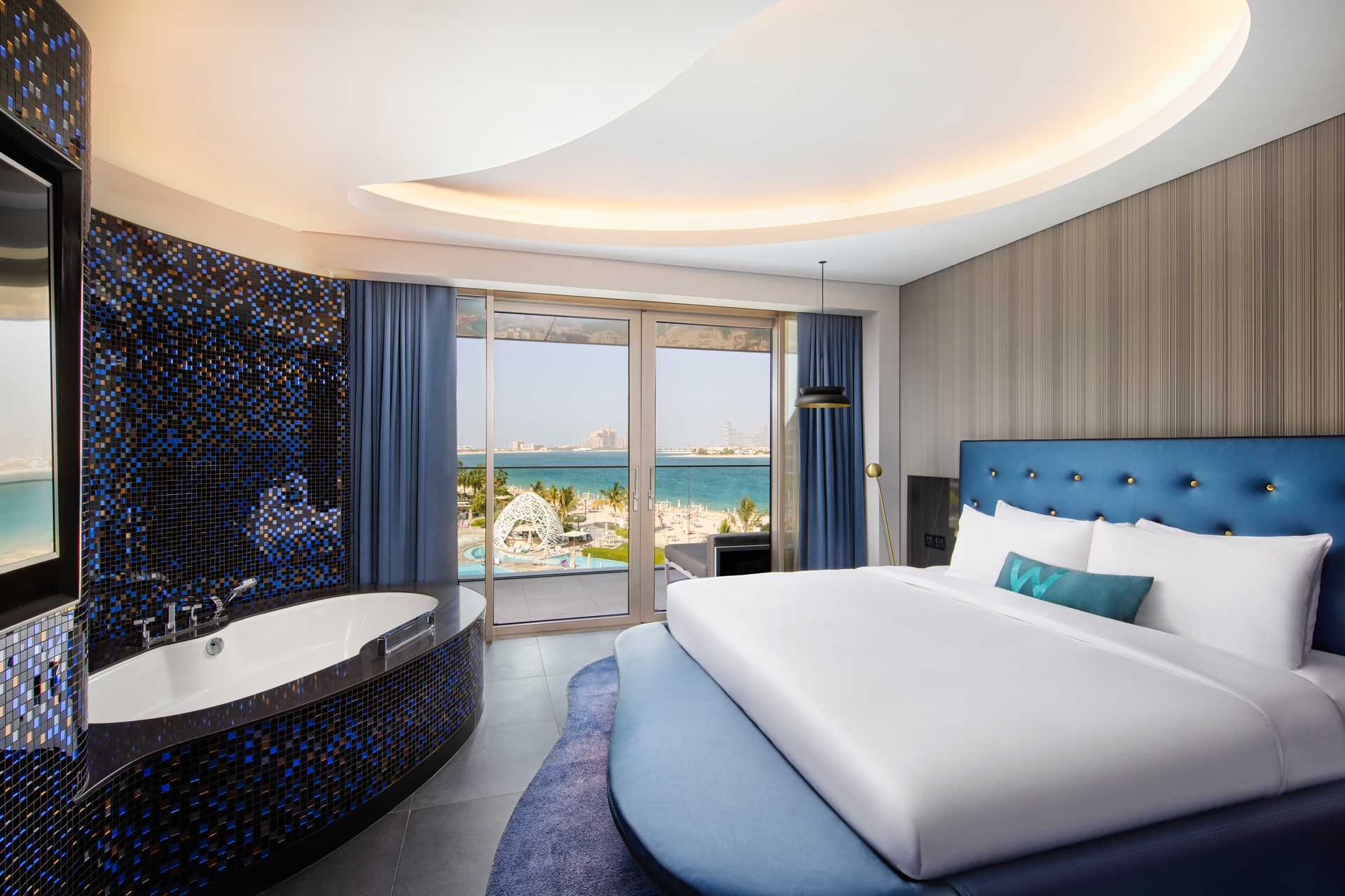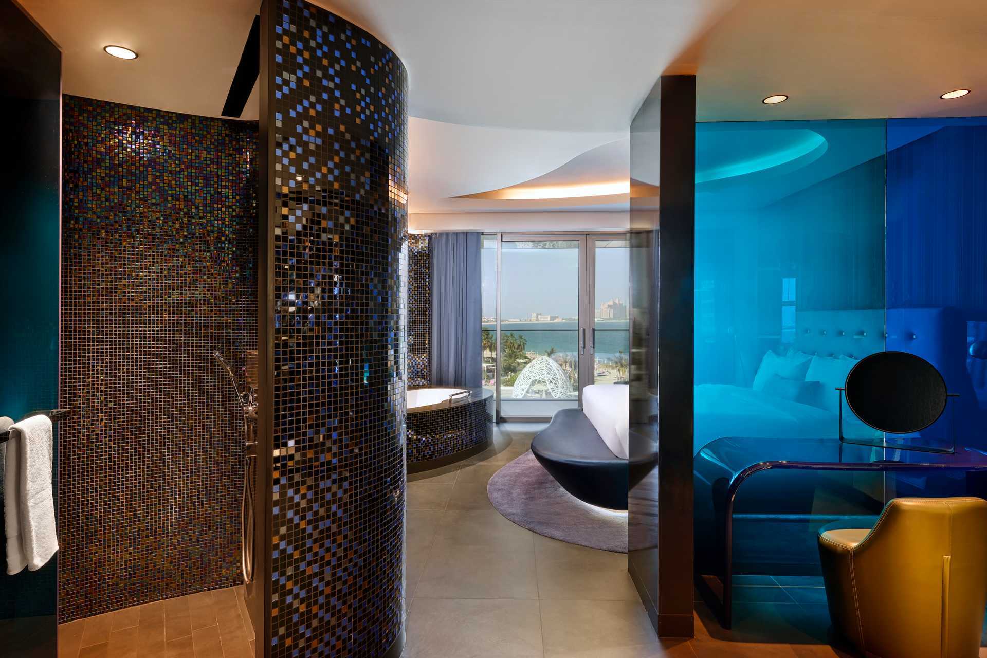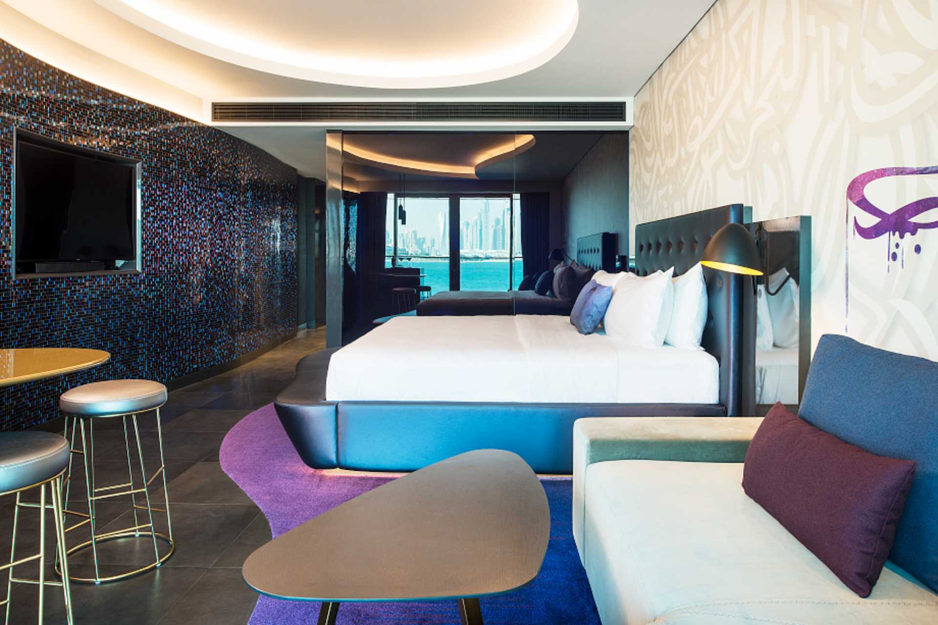 Deze suite heeft een balkon en uitzicht op zee. Het balkon heeft een ligbed, tafel en stoelen. De suite bestaat uit een slaapkamer en een woonkamer. Een groot tweepersoonsbed of twee kleinere tweepersoonsbedden en een bad in de slaapkamer. Mogelijkheid voor een extra bed in de vorm van een slaapbank in de woonkamer. Airconditioning, wifi en kluisje. Minibar met water inbegrepen. Koffiezetapparaat. Tv met internationale zenders. iPod dock. Strijkplank en strijkijzer. Badjassen en slippers. Föhn. Badkamerproducten van Davines & Skin Regiment. Badkamer met douche en toilet. Schoonmaak 7 keer per week. Het hotel noemt deze kamers W Suite.