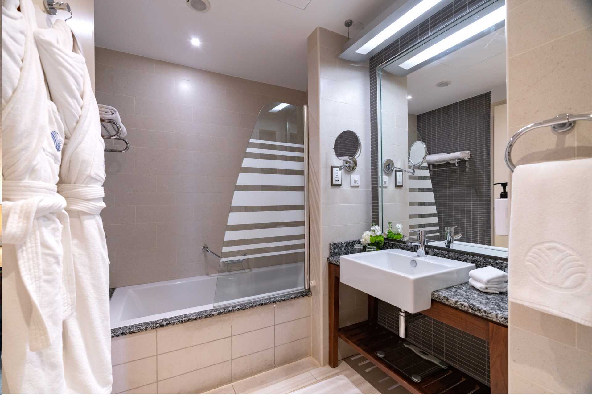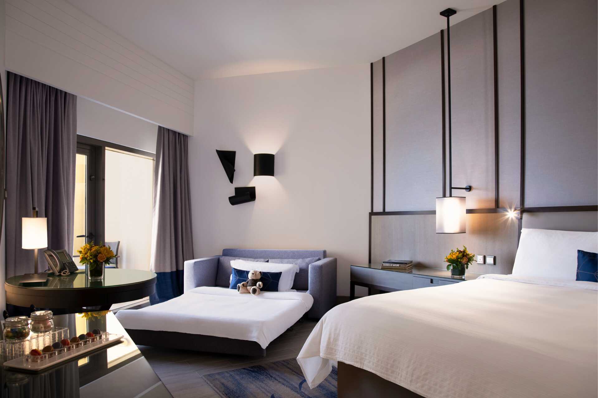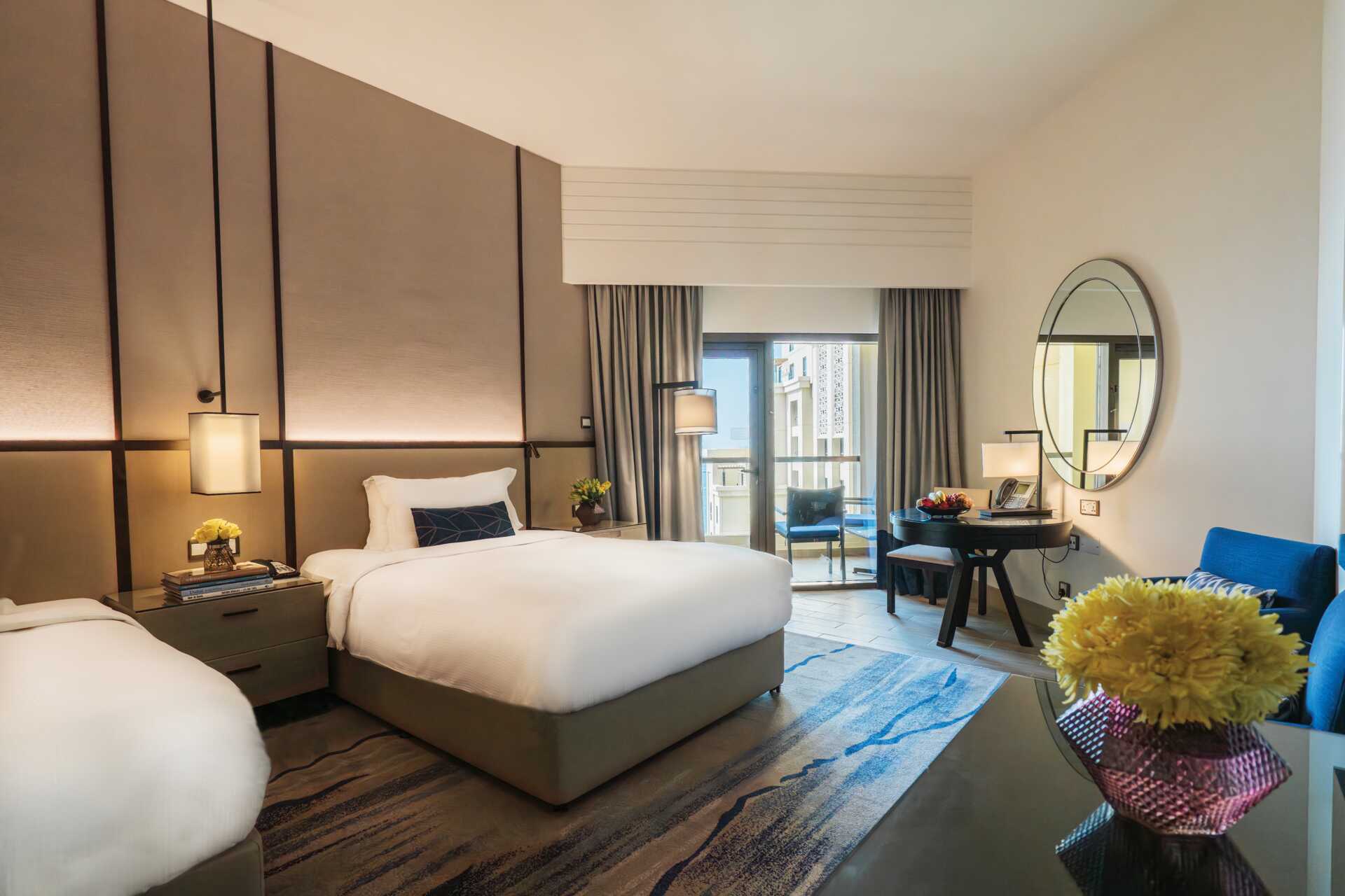 Deluxe kamer met balkon en uitzicht op Ain Dubai. Een tweepersoonsbed of twee eenpersoonsbedden. Mogelijkheid voor extra bed in eenpersoonsbed. Wifi, airconditioning en kluisje inbegrepen. Minibar. Waterkoker en koffie en thee. Badjas. Föhn. Badkamer met bad of douche en toilet. Schoonmaak 7 keer/week. Kinderen jonger dan twee jaar in het maximum aantal personen op de kamer.