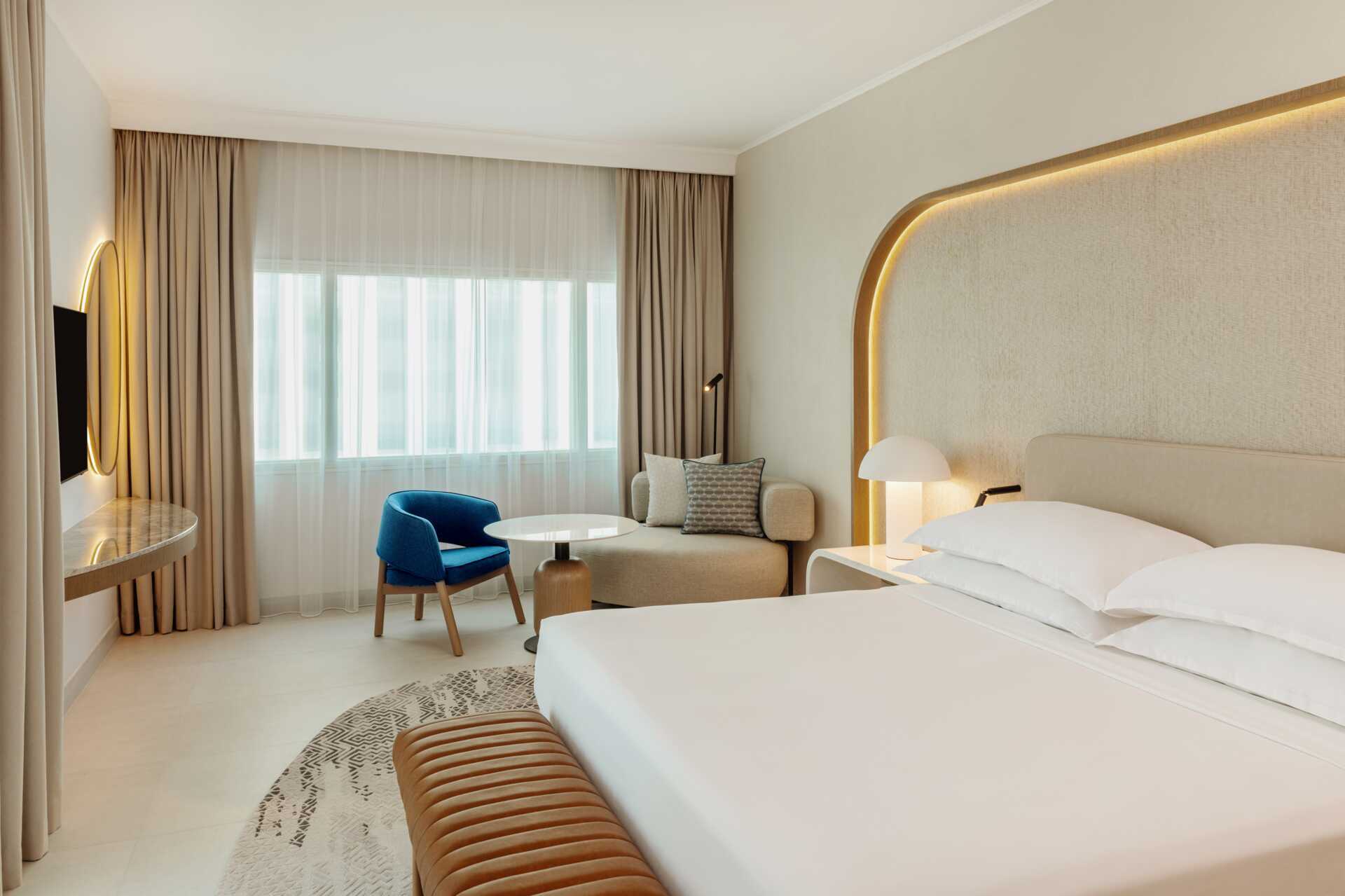 Clubkamer, zonder terras. Sommige kamers hebben vanuit het raam uitzicht op zee. De kamers bevinden zich op de bovenste verdiepingen van het hotel. Een tweepersoonsbed of twee eenpersoonsbedden. Mogelijkheid voor een extra bed in de vorm van een opklapbed. Wifi, kluisje en airconditioning inbegrepen. Minibar tegen betaling. Waterkoker, koffie en thee. Tv met internationale zenders. Strijkijzer en strijkplank. Föhn. Badkamer met douche en toilet. Schoonmaak 7 keer/week. Kinderen jonger dan twee jaar zijn inbegrepen in het maximale aantal personen in de kamer.